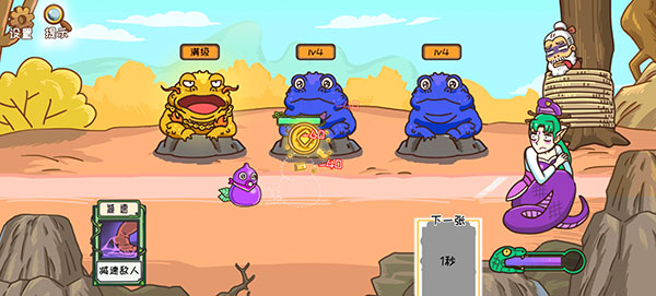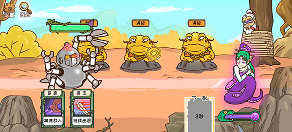 2、我们先将蛤蟆将军升级到满级,再用卡牌减速,或者是进攻敌人。