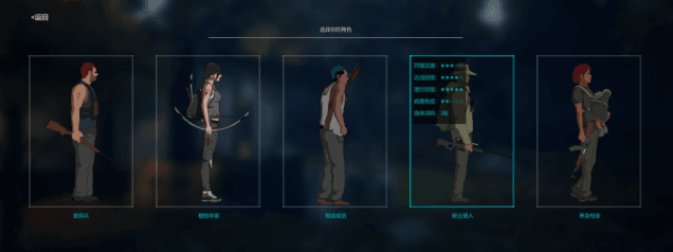 1、每个角色拥有不同的武器、近身搏斗值、潜行技巧和身体消耗,甚至每个角色的对抗疾病的免疫力都不相同。