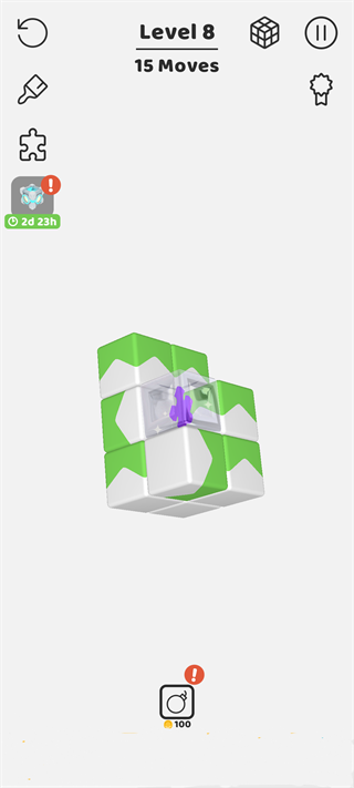 4、全方位视角:游戏提供360度可变视角,玩家可以随时切换不同的截面来选择可以消失的积木块。