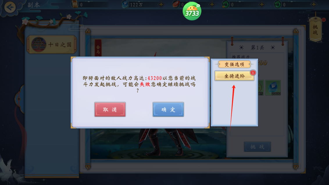 2、提升自身战斗力是关键,这需要通过进阶坐骑和强化装备来实现