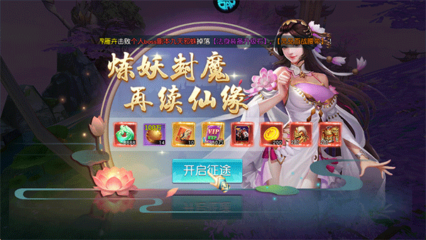 3、首次进入游戏送超多奖励道具和超值礼包,点击开启征途领取;