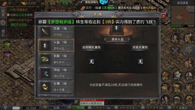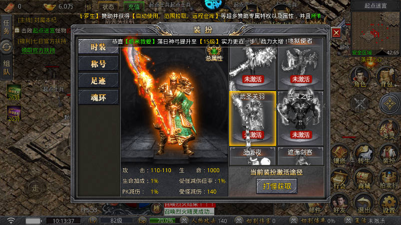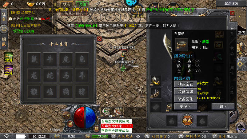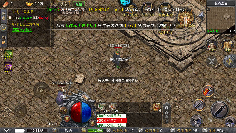 1、上线送新手道天装备、龙年贺岁称号装扮、自动拾物、自动回收、开天斩、逐日剑法,超值装备。