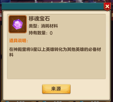 在神殿里将9星以上英雄转化为其他英雄的必备材料