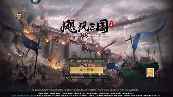 1、在本站下载飓风三国手游,进入游戏后选择区服点击登录;