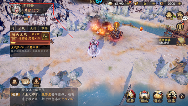 武将麾下精兵百万,游戏通过战前布阵策略,对不同兵团种类、数量以及站位排布做详细谋划,战中可操作武将释放各类酷炫大招,可破大阵,亦可突进斩将于乱军。