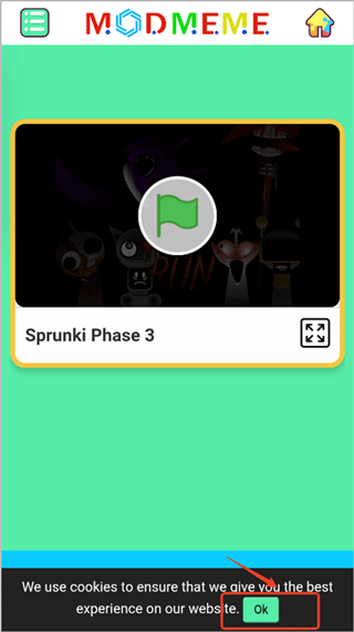 1、在本站下载安装好节奏盒子sprunki第三阶段重制版,运行游戏并点击ok表明了解游戏;