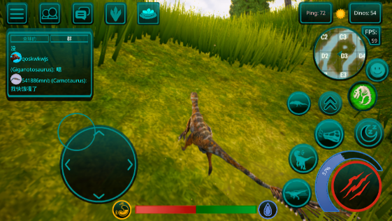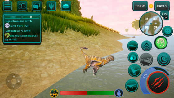 如果你是肉食恐龙,那么就需要杀死其他玩家的恐龙来获取自己的肉食,如果是草食动物,那么食物就比较简单了,需要特殊的蕨类植物,可以获得足够的蕨类植物!地图上的任何湖泊或水库都可以饮用。
