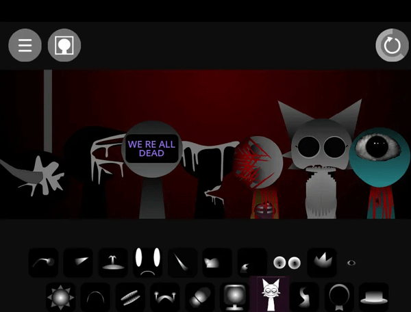 节奏盒子第五阶段(sprunki phase5)官方正版是一款独具特色的音乐节奏游戏,也是sprunki模组恐怖模式中的第五个阶段,此版本中加入了五个不同阶段的音乐模组玩法,在这里玩家需要在游戏中拖动相应的表情和符号,从而触发不同的演奏阶段,每个阶段中的音乐风格大不相同,卡通的人物形象也会发生改变,玩家可以自由演奏各种乐曲,享受紧张刺激的游戏体验。另外,节奏盒子sprunki第五阶段模组游戏关卡的音乐较为尖锐,玩家可以根据自身情况调整声音大小。主要任务是按照特定顺序为中间的小人选择不同的装扮,然后为周围的小人搭配上合适的装扮,最终将小人的装扮调整到特定状态,才能顺利进入下一阶段,有兴趣的朋友快来下载体验吧。