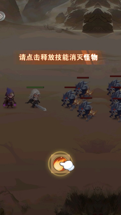 1、进入命运决战官方版游戏后通过点击释放技能消灭怪物