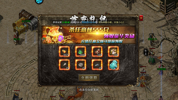 2、首充礼包,杀任意怪555只,领取豪华奖励