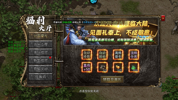 1、上线即可领取自动回收、自动拾取、自动使用、仓库全开等特权
