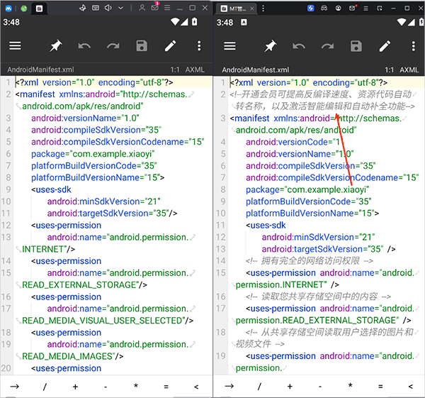1、用户拿到本站所提供的mt管理器永久vip版后与正版安装在同个设备上时表面上看起来像是可以共存,因为包名不一样,当然可以共存