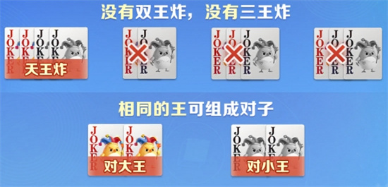 4、没有双王炸,没有三王炸,相同的王可组成对子