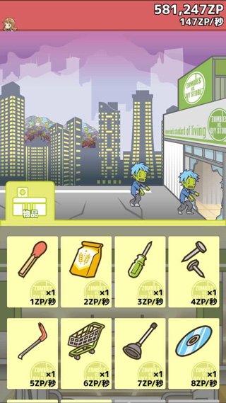 游戏开始,我们是被一群僵尸追赶至昏迷,醒来后,在一家建材超市里面,僵尸暂时进不来。我们现在的首要任务,就是创造不同的道具,来抵挡不断进行攻击的僵尸。在屏幕右上方,是你的金币显示额以及每秒钟你的金币增长速度。屏幕下方,是你获得物品的地方,将物品组合获得道具的地方。历史是一个可以将你的游戏记录回放的地方。屏幕右边,是你可以使用的道具以及你正在使用的道具。这个游戏,使用了道具之后,道具会自行对僵尸进行攻击,同时,你的金币也会自动增长,就算是在游戏玩家退出游戏后,道具也是会发动攻击的。