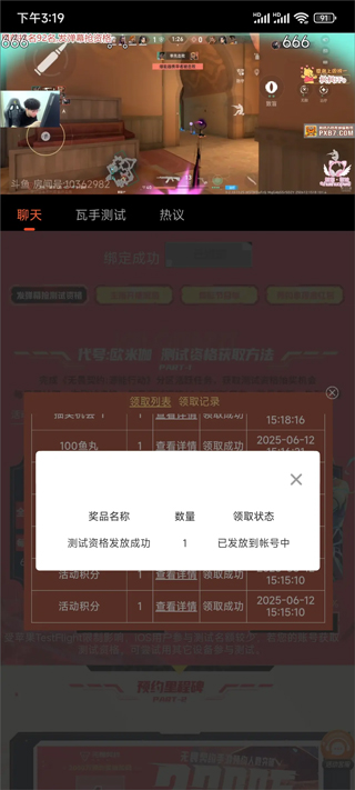 3、抽取成功后,资格会发放到绑定账号中,这样就可以玩无畏契约手游了。