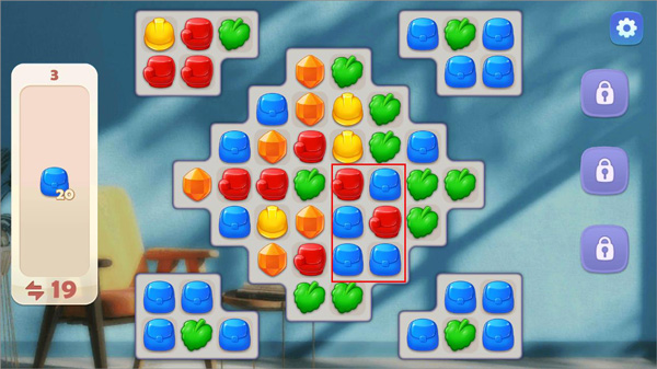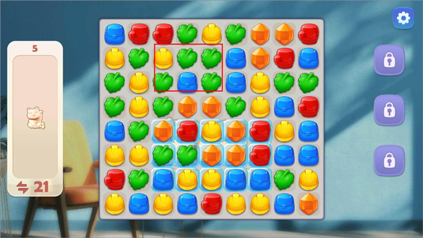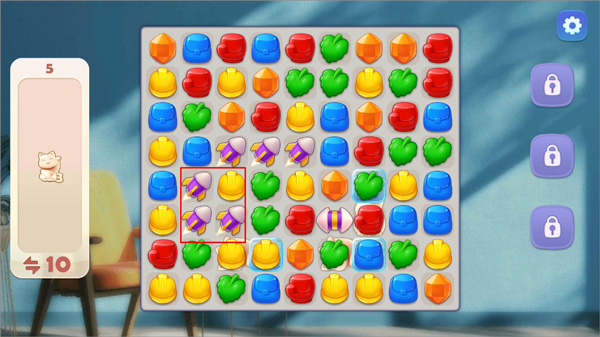 1、交换以在一行中匹配3个或更多类似的瓦片,从而将其消除;