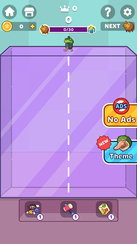 2、进入游戏如图,玩家需通过点击屏幕来落下不同的生物;