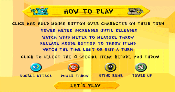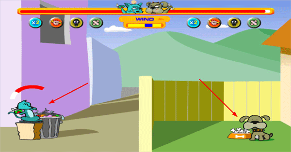 猫狗大战游戏单机版又名Cat Vs Dog War,这是一款非常欢乐有趣的休闲手游,在游戏中可以看到一只猫和一只狗,它们互相用东西砸对方,操作简单,画风卡通有趣,音效设定有趣、搞怪。同时游戏中还有很多的物品,可以随意收集,自由投掷,享受欢乐的游戏体验,众多令人喜欢的元素,融入其中,带给玩家们更为欢乐的绝佳体验,实力 较量,回合对战,精彩无比。而且在猫狗大战游戏中进行对战的时候画面会出现蓄力条,以此控制骨头抛出的距离,但一定要考虑风向和风力的大小,此外还有四个功能钮,可以补血、扔臭弹、增加攻击力、增加攻击次数,但是只能用一次。总之其经典的猫狗大战,独特的战斗方式,可轻松给玩家们带来不一样的游戏体验,感兴趣的快来下载体验吧。