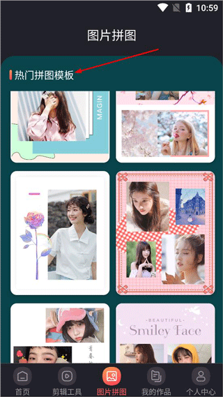 3、图片拼图页面可采用热门拼图模板对照片进行编辑;