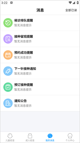 6、预约所有的等待通知和状态都可以app的【我的消息】页面下查看