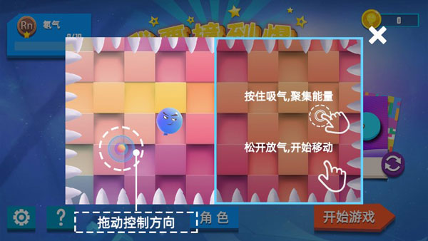 基础操作:左侧遥感,通过都拖动控制方向,右侧长按吸气,聚集能量,松开放气移动。