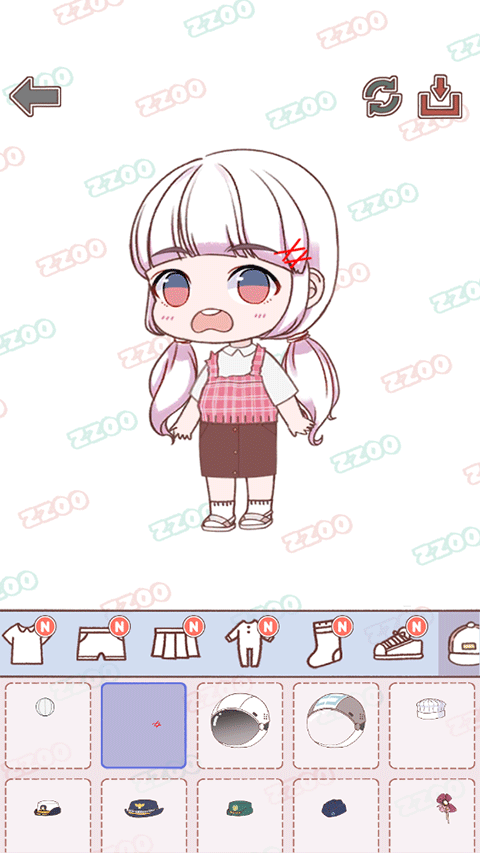 3、装扮好之后,如果不满意可以点击右上角“旋转”按钮重新装扮、点击“↓”可保存装扮。