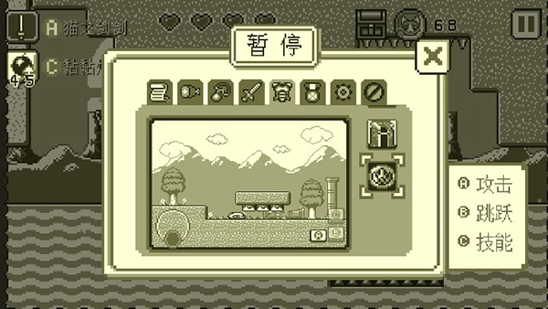 喵之大冒险官方正版是一款怀旧经典风格的横版闯关冒险类角色扮演手游,英文名为:Catsby。作为一款怀旧闯关风格作品,这款游戏画面采用简约像素风格制作,虽然简单,但黑白画面清晰明了。在玩法方面,游戏延续了经典的横版闯关模式,剧情围绕益智猫咪寻找失踪的主人展开,在这里玩家将扮演这只猫踏上寻找主人的冒险旅途。这款游戏内关卡丰富,技能道具有趣,玩起来十分有趣,欢迎感兴趣的玩家来本站下载体验。