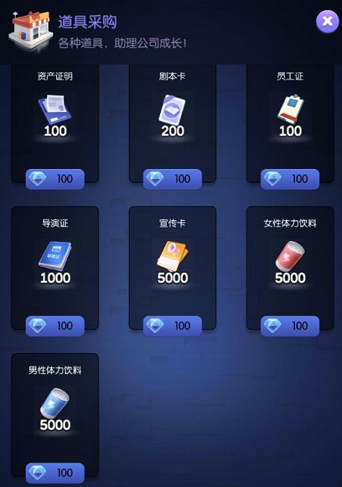 商店中的100钻石金币,这个又更亏了,买两次都可以抽一次卡了,给的只有50000金币,也是前期看着收益挺高的,但后期你金币虽然还是拮据的,但还是不如抽卡,保证你艺人总体质量。