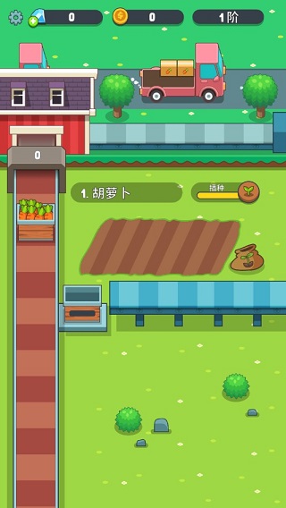2、收割完成后,将自动进行产品流水线,待产品走到图中所示的流水线上时,便可点击装车,车辆在装满货物时,便会自动发往市场,而你也将得到相应的奖励。