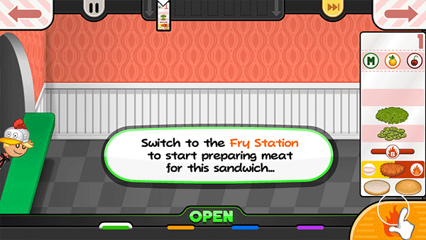 游戏中老爹路易在开设第一家鸡肉三明治餐厅时,竞争对手突然出现了,给老爹路易制造了不少压力,玩家将要帮助老爹来经营快餐店,需要制作面包、面糊和油炸食品来制作各种不同的三明治,将三明治堆满浇头和酱汁,制作清爽的漩涡雪泥,为挑剔的顾客提供服务,来赚取更多的金币,给店里带来更多收益。