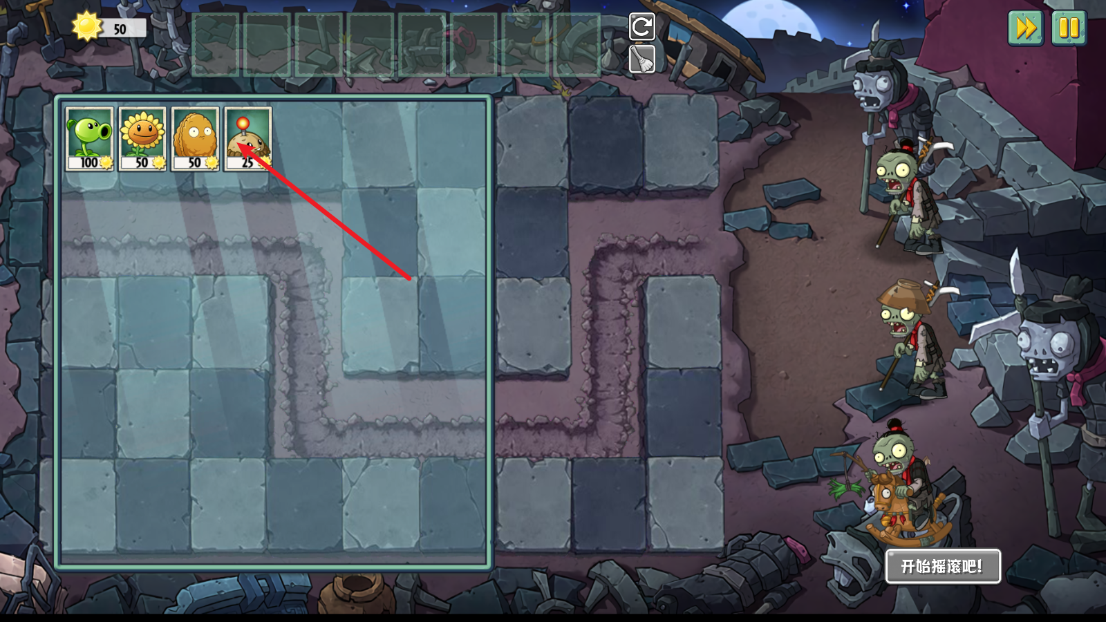 9、当有僵尸入侵了,我们就得针对性的去布置防御。