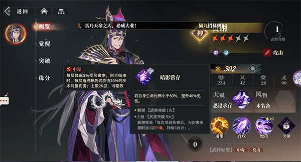 核心武将:贾诩和李儒,贾诩优先1火,提高免伤,而且反击贼厉害!一个武将就能单挑对面全队!李儒,则是增加上毒的层数,不刚需1火。目前毒队还没成型,缺队友,但贾诩强度太高了,导致也能玩!