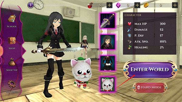 5、游戏中还提供了商店系统,当玩家金币足够时可以在商店中购买新的武器、服装、发型和宠物