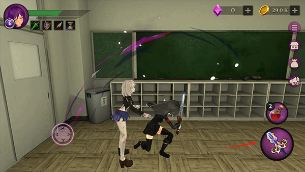 2、在动漫高中僵尸模拟器游戏中你将通过左边遥感操控角色的移动,右边为攻击按键