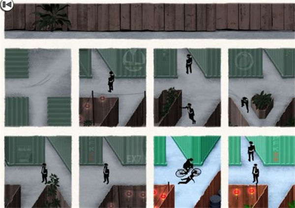 这关稍微增加了难度了,先把第一第三画面对换,让人物从画面二翻墙过去。