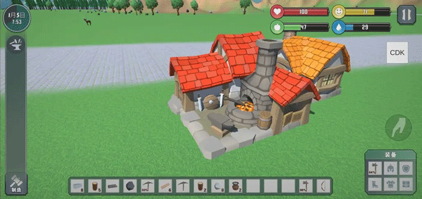 保证了生存,就可以开始撸树撸铁撸石头,建造各种加工坊
