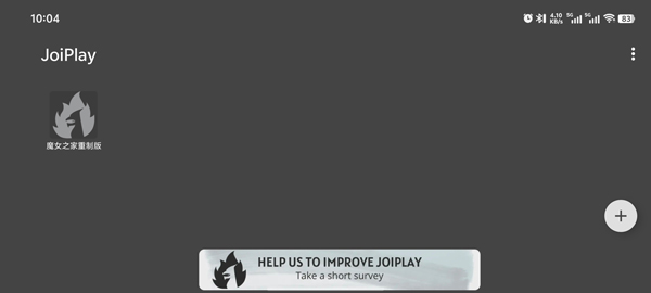 1、安装完游戏之后打开Joiplay模拟器,点击右下角+号创建,输入游戏名“魔女之家重制版”,版本号填1;