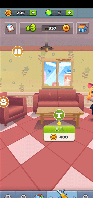 4、点击维修我们即可前往客厅,在这里我们可以进行打造你的小房间;