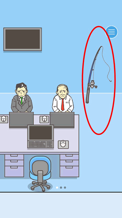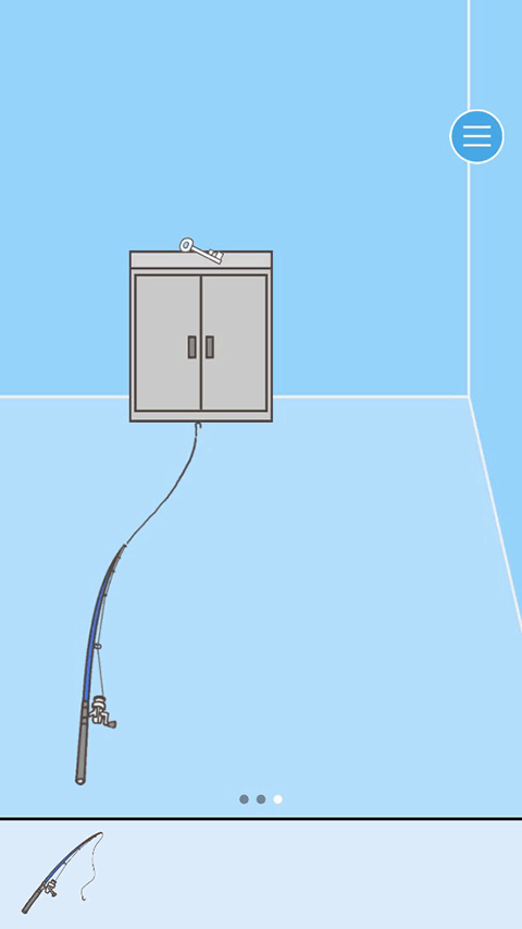 把场景移到第三个场景,我们可以看见柜子上有把钥匙,这个时候我们就需要动动我们的小脑袋了,如果这么轻易的就能拿到钥匙,那我们第一个场景拿到的钓竿有什么作用呢?所以小编尝试下的把钓竿往钥匙那放了一下,这样就得到钥匙了。后续小编测试了一下直接拿钥匙的情况,直接拿会掉落到领导布置的陷阱之中。