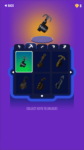 1、下载后打开进入游戏,点击“SKINS”可以使用钻石自由购买自己喜欢的人物、滑板、抓钩等等;