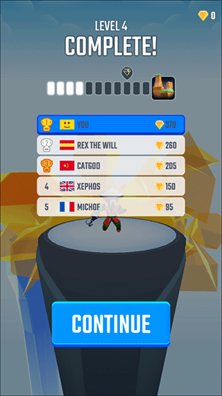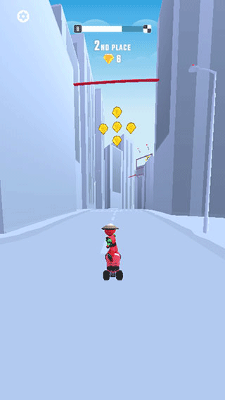 5、当我们到达终点时会有一个排行统计,第一名会获得相对较多的金币奖励,金币可以用来解锁一些皮肤;