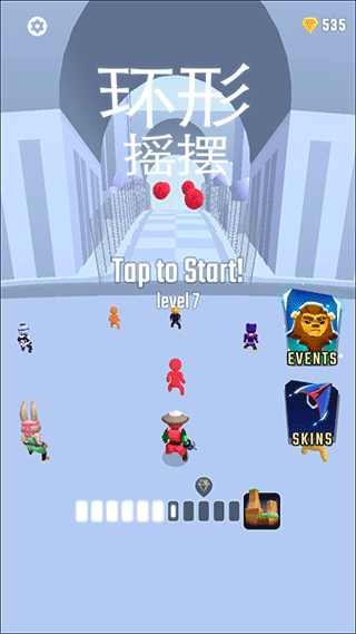 4、我们要做的就是控制小人不断的躲避障碍,争取第一个到达终点,这期间游戏内会有一些道具来帮助我们更好的进行闯关;