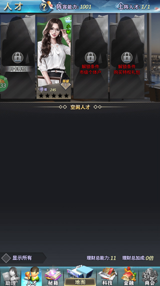 4、人才可以配备一辆座驾和最多三位秘书。座驾和人才都可以增加人才能力。