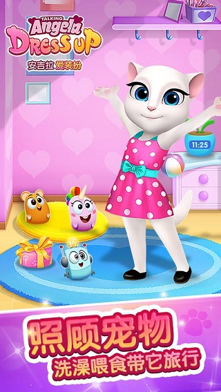 风靡全球的安吉拉来啦,安吉拉爱装扮最新版是一款拥有时下流行的搭衣PK和周比赛玩法,万种服饰搭配一秒换装的手机游戏,那么如此多的衣服,到底怎么搭配才是最好看的呢,你快来帮安吉拉一起想想吧!对了,你还需要照顾可爱的小宠物,不过它们会时常出去玩,还会给你带回来惊喜的小礼物的!千变造型随心切换,照顾猫咪一起长大,感兴趣的玩家快来下载体验吧!