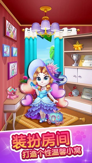 童话世界没有孤单,玩家成为公主大人有宠物相伴,逗弄、喂食,宠物会帮你解闷。为了回报玩家的照顾,宠物外出玩耍找寻惊喜礼物送给你,新服饰让你的造型更多变。有时候宠物会送给你重复的东西,但不用伤心,重复的礼物都自动变成金币咯