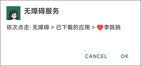 点击后会弹出一个开启无障碍服务的步骤,我们点击ok就可以自动跳转到设置。