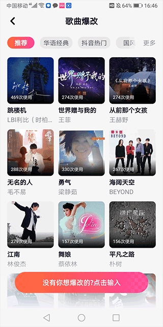 4、歌曲爆改功能可以让你使用的热门歌曲进行ai爆改