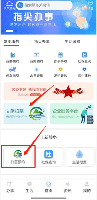 1、打开“i顺德”app,在“首页”版本点击“上新服务”栏目下的 “清明祭扫预约”应用即可进入清明祭扫预约系统。