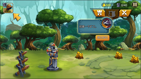 2、首先需要招募矿工,他能帮助你获取游戏金币来让你制造出更多更强的士兵。