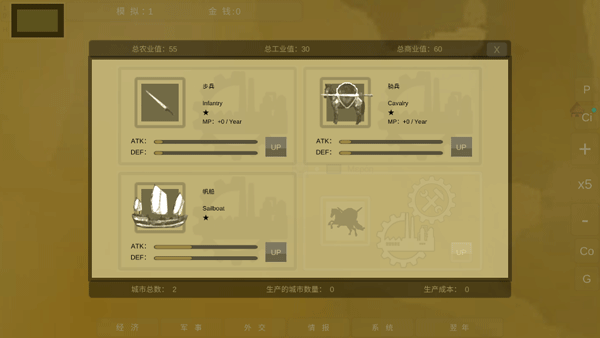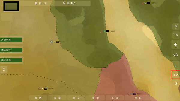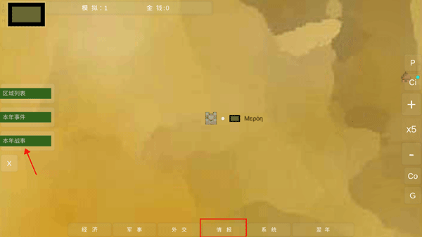 情报包括区域列表、本年事件、本年战事,这些会显示不同区域间所发生的的各种讯息;